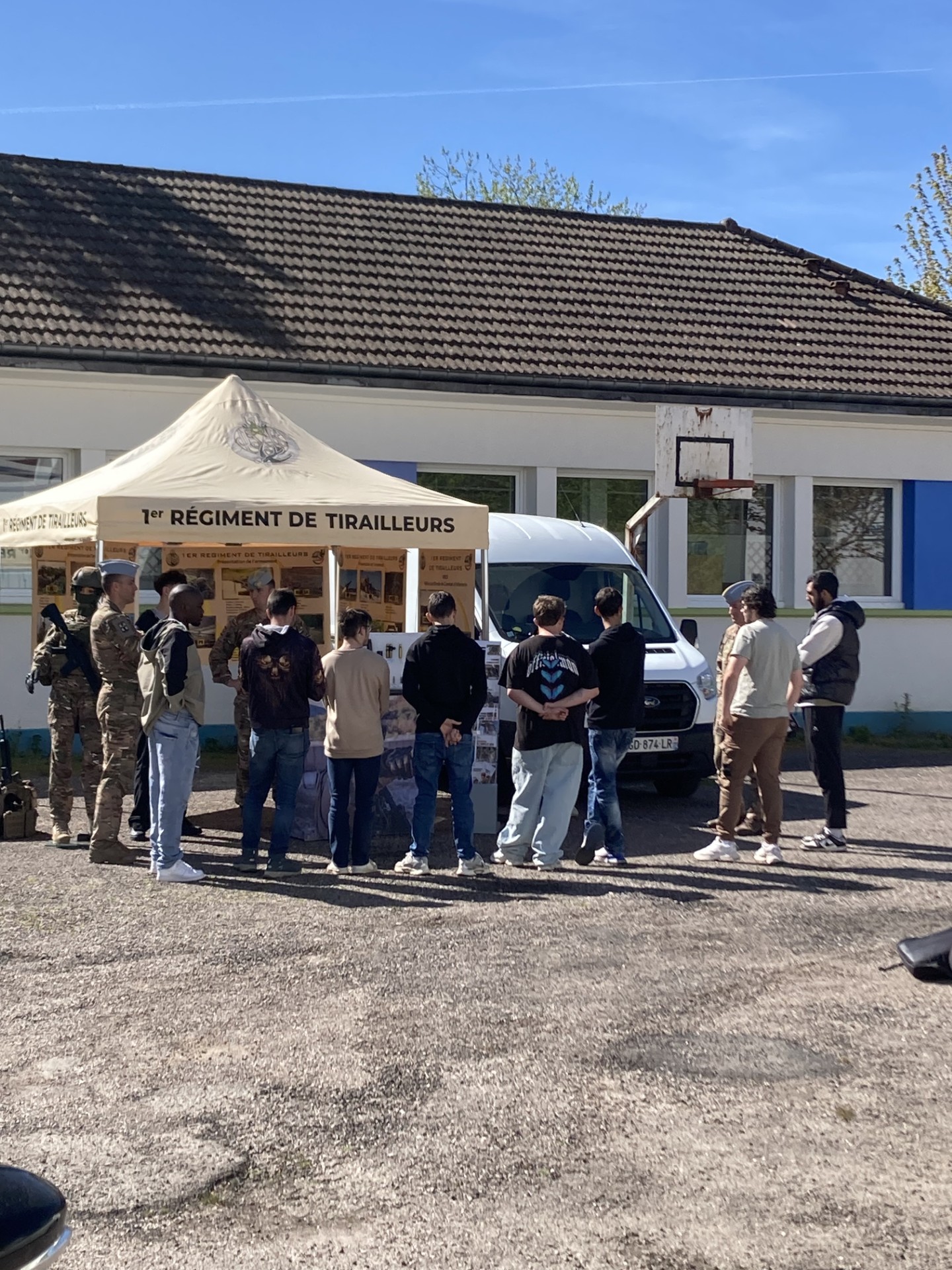 En ce beau vendredi ensoleillé, le premier régiment de tirailleurs est venu à la rencontre de nos stagiaires pour leur présenter la diversité des métiers de l’armée.